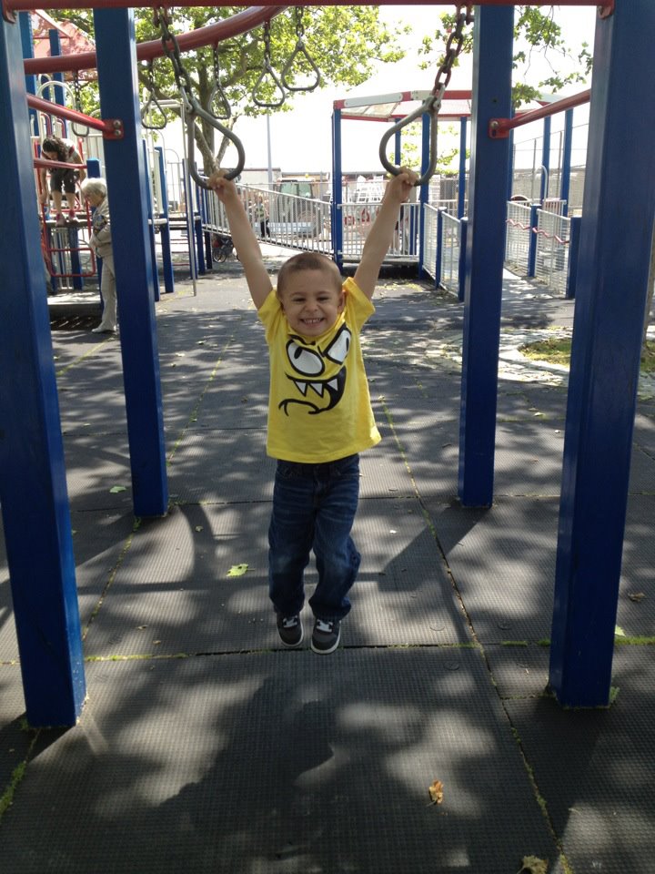 Swings! That’s a great idea! Standing in place definitely beats chasing these kids all over the park.